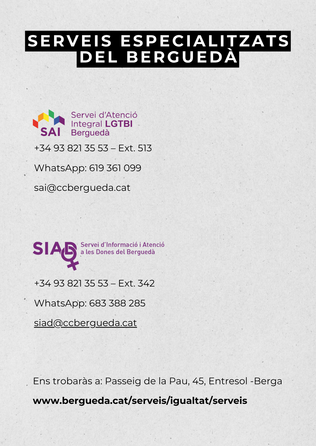 El dissabte 28 de juny hi haurà un punt LGTBIQ+ al mercat setmanal del passeig de la Indústria de Berga (de 10 a 14 h) per donar visibilitat al col·lectiu i al Servei d’Atenció Integral (SAI) LGTBI del Berguedà, amb la dinamització de la drag queen Barbara Trash.