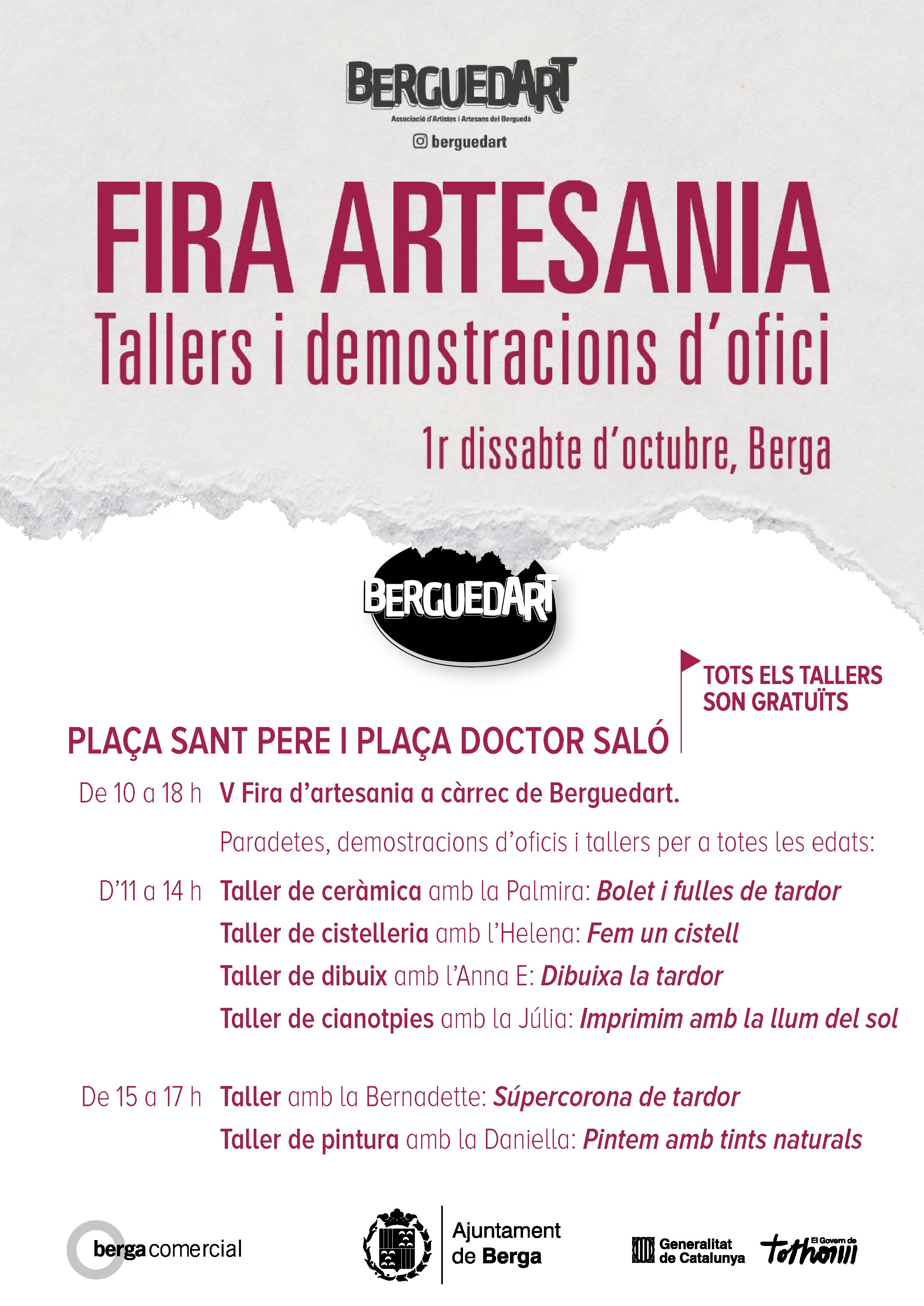 La Fira d’Artesania és organitzada per BerguedArt i l’Ajuntament de Berga amb el suport de la Generalitat de Catalunya.