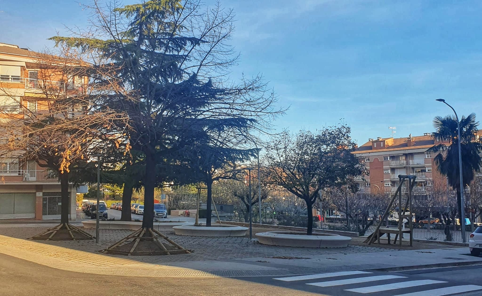 S'ha creat una plataforma única, s'han renovat paviments, la xarxa d'aigua i s'hi ha instal·lat nou mobiliari urbà. Al llarg de les pròximes setmanes encara es duran a terme petites adequacions a la plaça, com ara actuacions puntuals de jardineria, la instal·lació de papereres, renovació dels fanals, reposició d'elements de mobiliari urbà i adaptacions en algun dels nous bancs. Tot i la notable transformació de la plaça, s'ha prioritzat conservar l'arbrat que hi havia (un gran cedre i quatre til·lers), amb els seus escocells ampliats. D'altra banda, s'ha instal·lat una tirolina i un tobogan que comunica les dues places.
