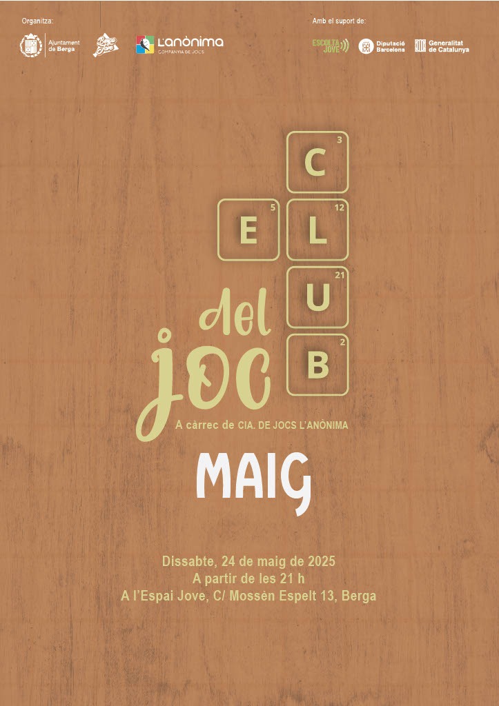 El dissabte 24 de maig torna el ‘Club del Joc’ a l’Espai Jove de Berga! Descobreix una àmplia selecció de jocs de taula venint a jugar amb nosaltres!