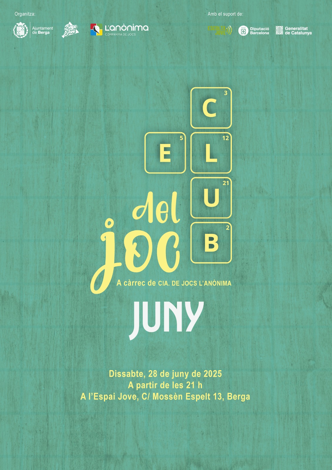El dissabte 28 de juny torna el ‘Club del Joc’ a l’Espai Jove de Berga! Descobreix una àmplia selecció de jocs de taula venint a jugar amb nosaltres!