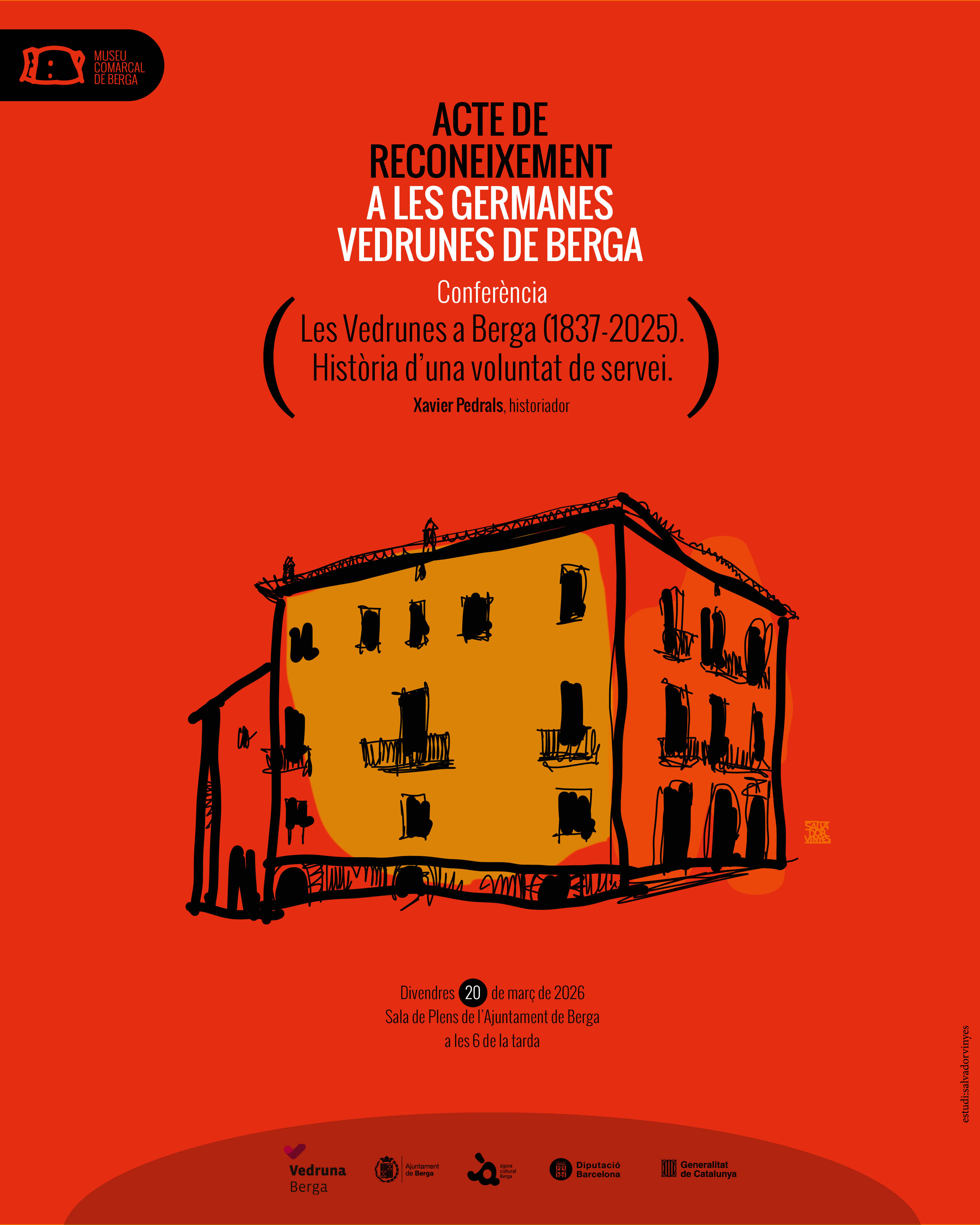 El passat 2025 va marxar de Berga la Comunitat de les Germanes Vedrunes. La seva història a la ciutat arrenca el 1837, durant la primera guerra carlina. Des de llavors, han participat destacadament en la vida berguedana, especialment en el camp de l'ensenyament i la sanitat. L’historiador Xavier Pedrals farà un breu recorregut per les seves activitats.