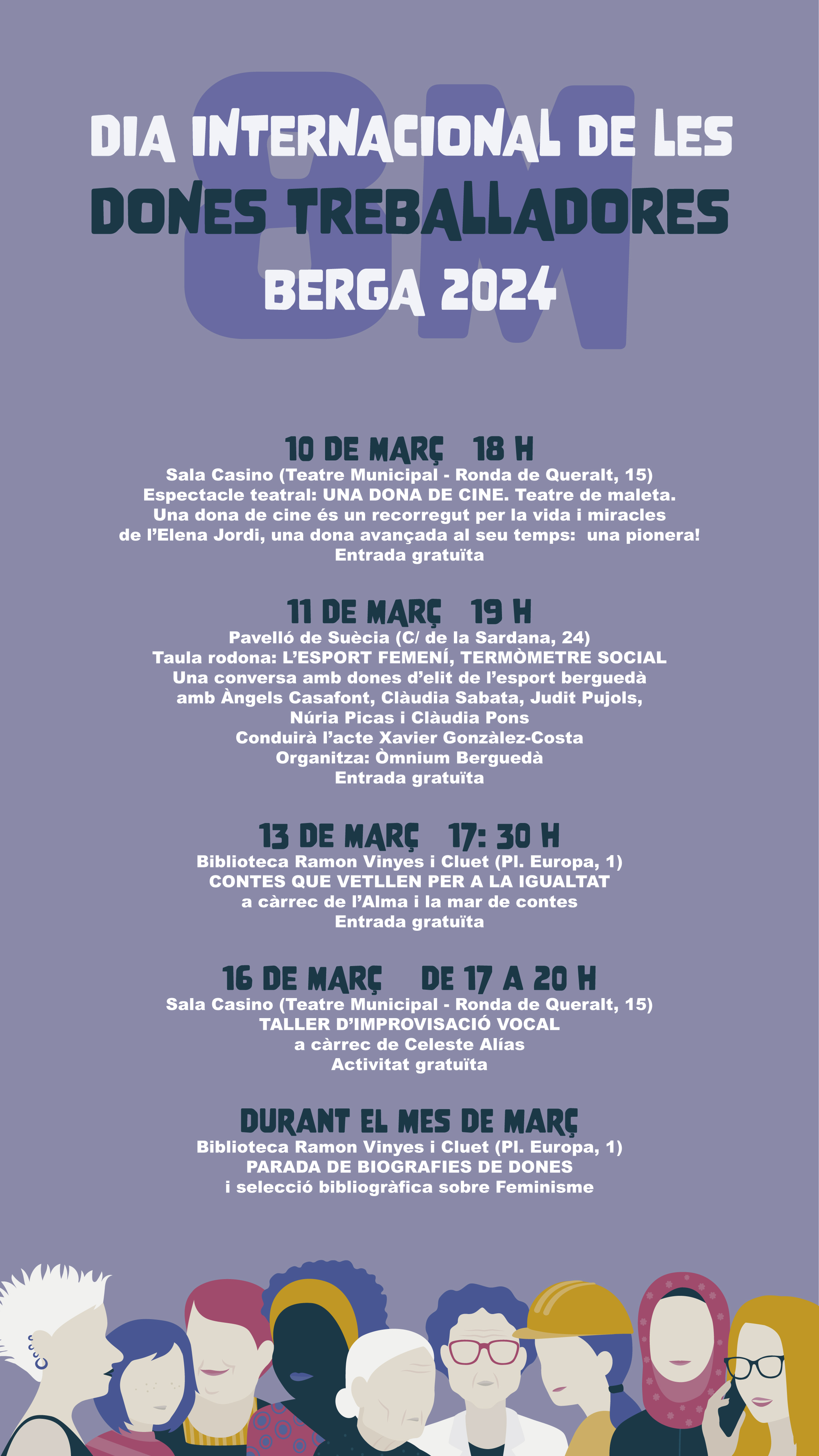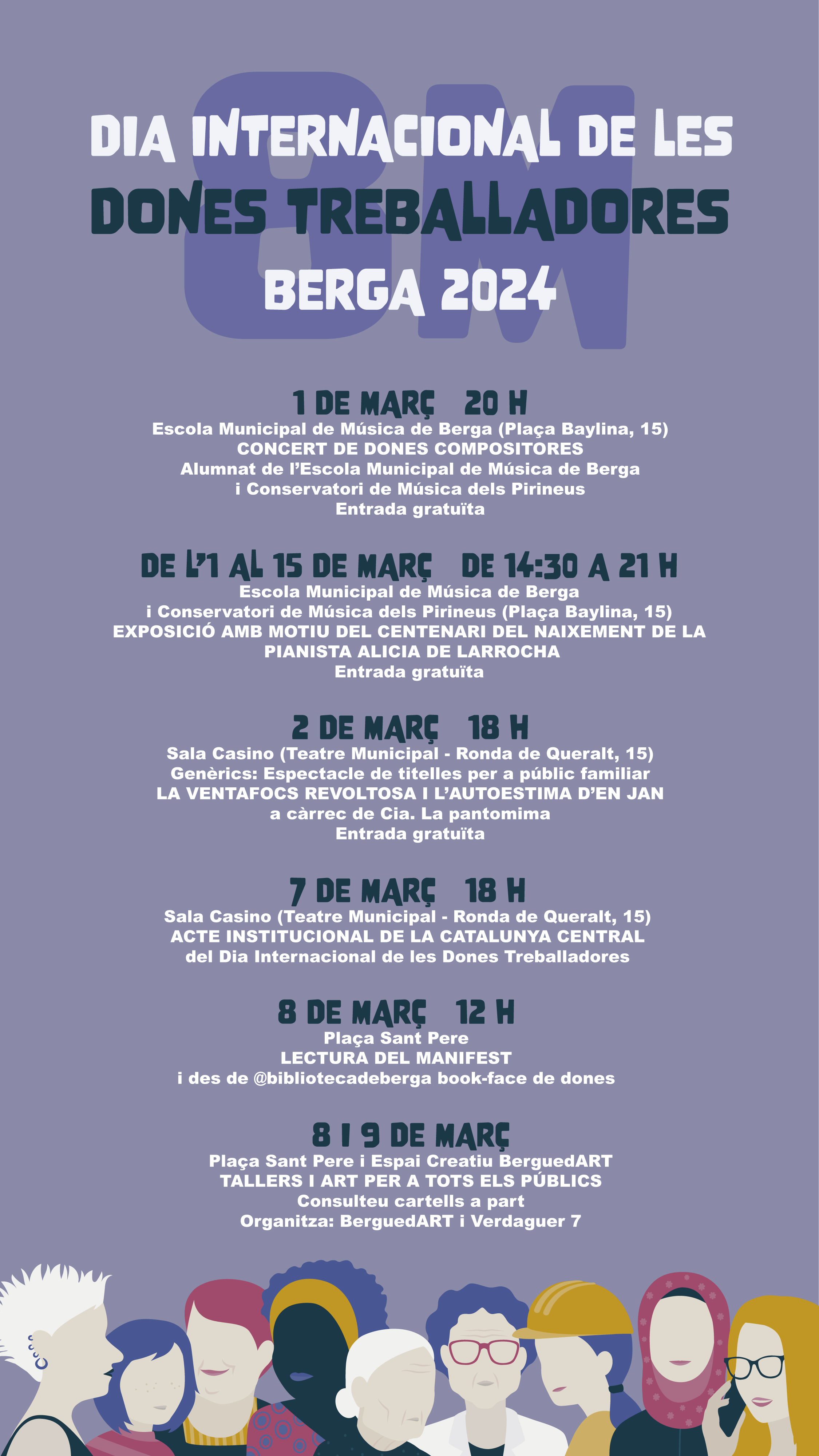 La plaça de Sant Pere acollirà la lectura del manifest del Dia internacional de les dones treballadores a càrrec de treballadores de l’Ajuntament de Berga.