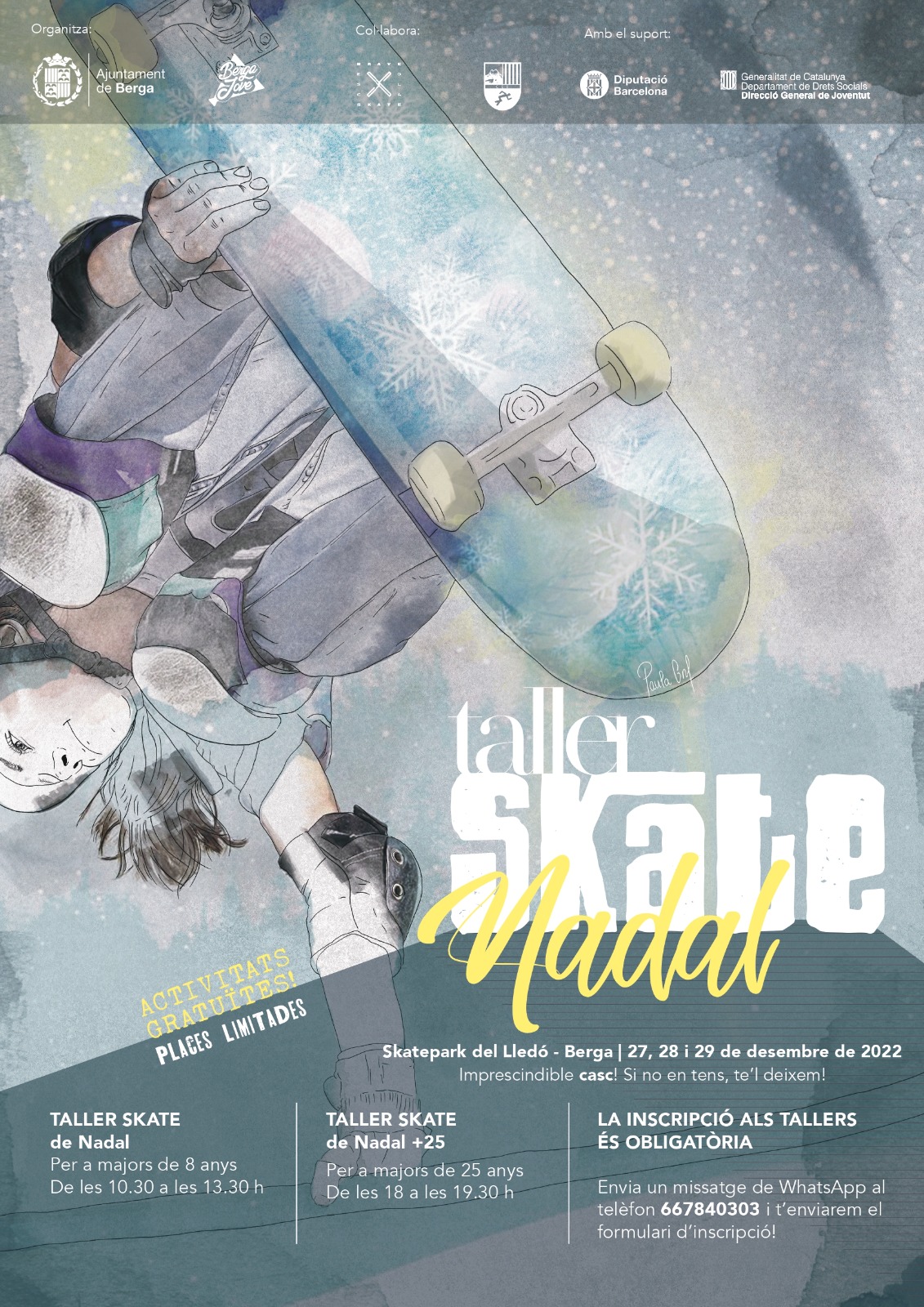 L'skatepark del Lledó acollirà l'edició de Nadal del Taller d'Skate, que es farà del 27 al 29 de desembre. Aquesta edició també comptarà amb el taller +25, per a persones de 25 anys o més. Les activitats són gratuïtes!