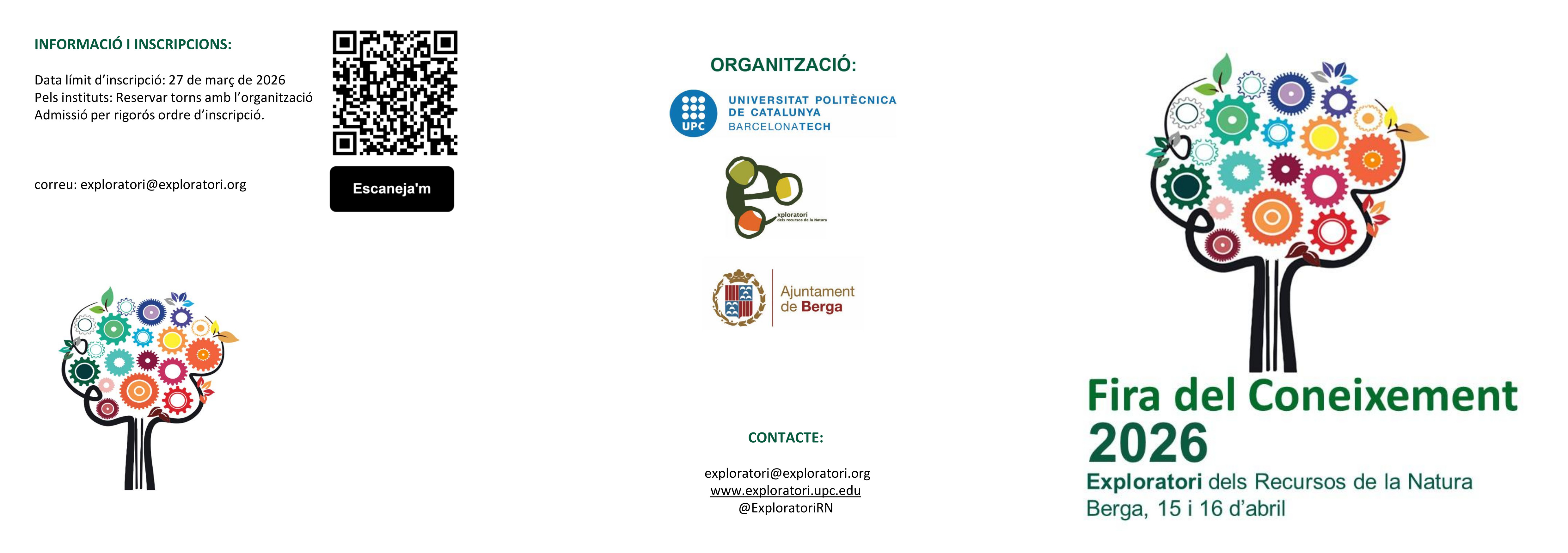 L’alumnat de centres educatius d’Artés, Barcelona, Gironella, Manresa, Martorell, Sant Sadurní d’Anoia, Puig-reig i Terrassa visitaran la fira durant les jornades del 15 i 16 d’abril. La fira també és oberta a la ciutadania i es recomana visitar-la dijous, especialment a la tarda, quan l’afluència d’estudiants és menor (de 15 a 17 h). La Fira del Coneixement és un esdeveniment organitzat per la Universitat Politècnica de Catalunya, l’Exploratori dels Recursos de la Natura i l’Ajuntament de Berga.