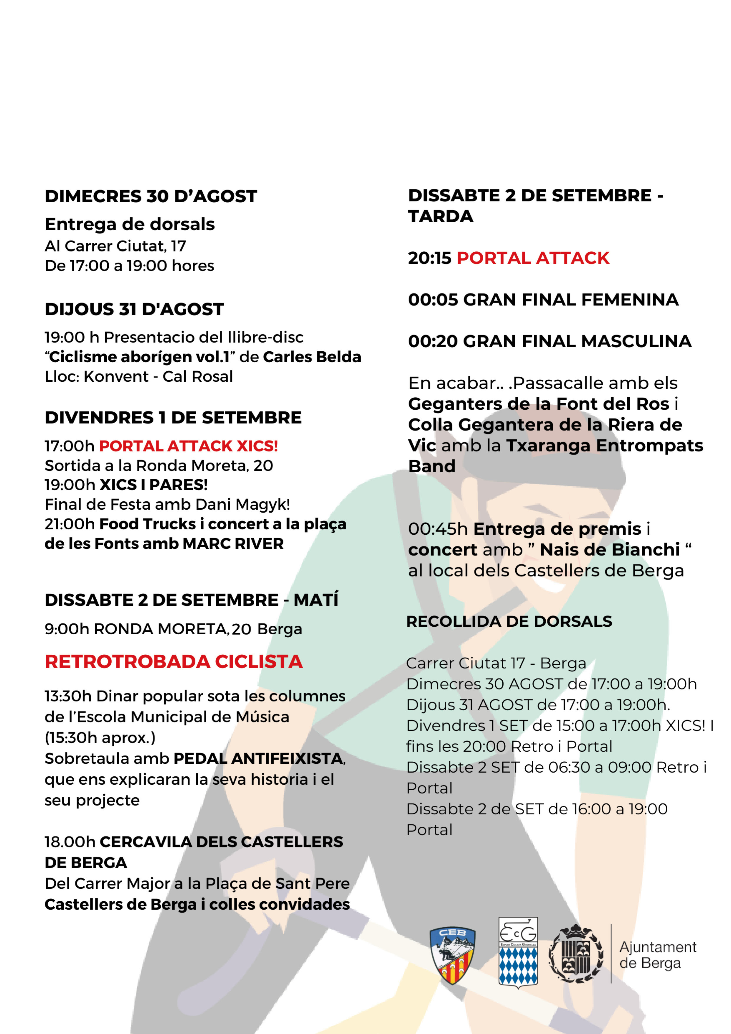 Es tracta d’un esdeveniment que arriba a la setena edició i que combina les bicicletes clàssiques i l’estètica retro, a través de la programació de proves esportives i activitats culturals relacionades amb el ciclisme. Un dels principals pols d’atracció és la Portal Attack, la mítica cursa nocturna que transcorre pels carrers del Barri Vell, que enguany augmentarà la xifra de participants, els punts d’animació al llarg del recorregut i disposarà d’una aplicació web amb informació en directe sobre el desenvolupament de la prova. L’esdeveniment és organitzat pel Club Esquí Berguedà, l’Ajuntament de Berga i el club Esport Ciclista Gironella.